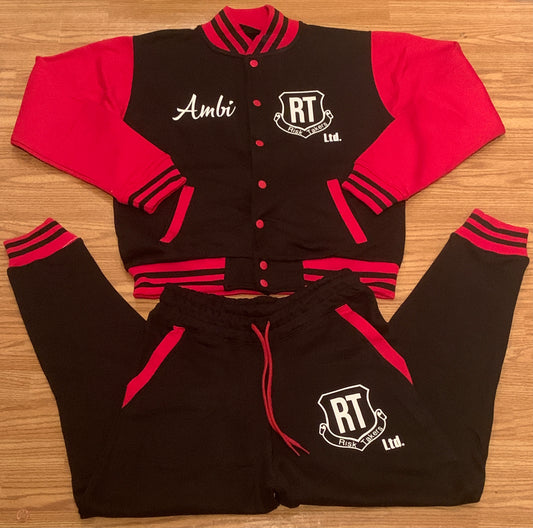 Black With Red Unisex Varsity RT Sweatsuit (Customs To Add Name Also Available Like Shown Above)