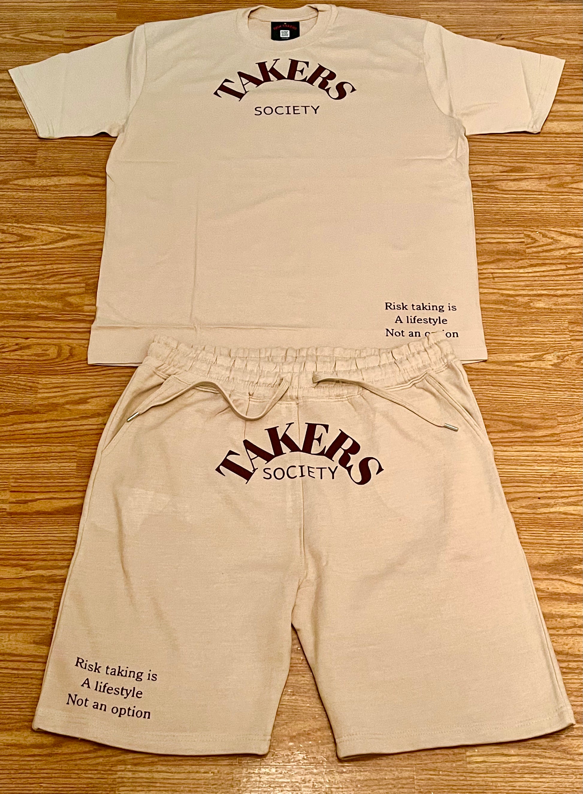 Cream With Chocolate Brown Unisex Takers Society Short Set
