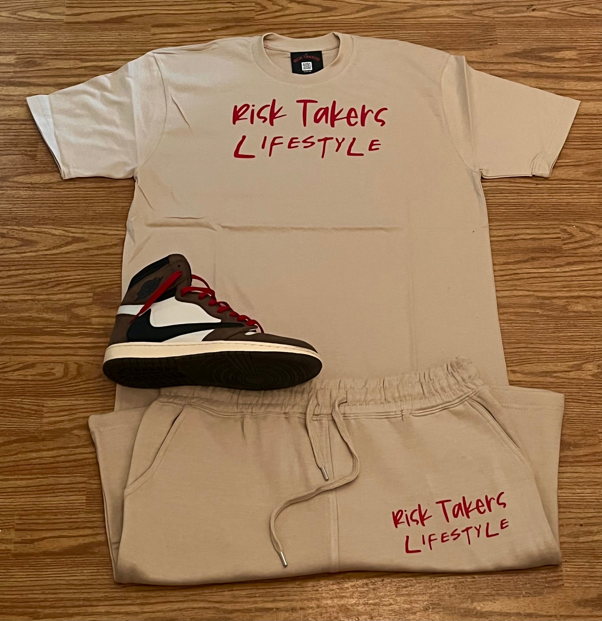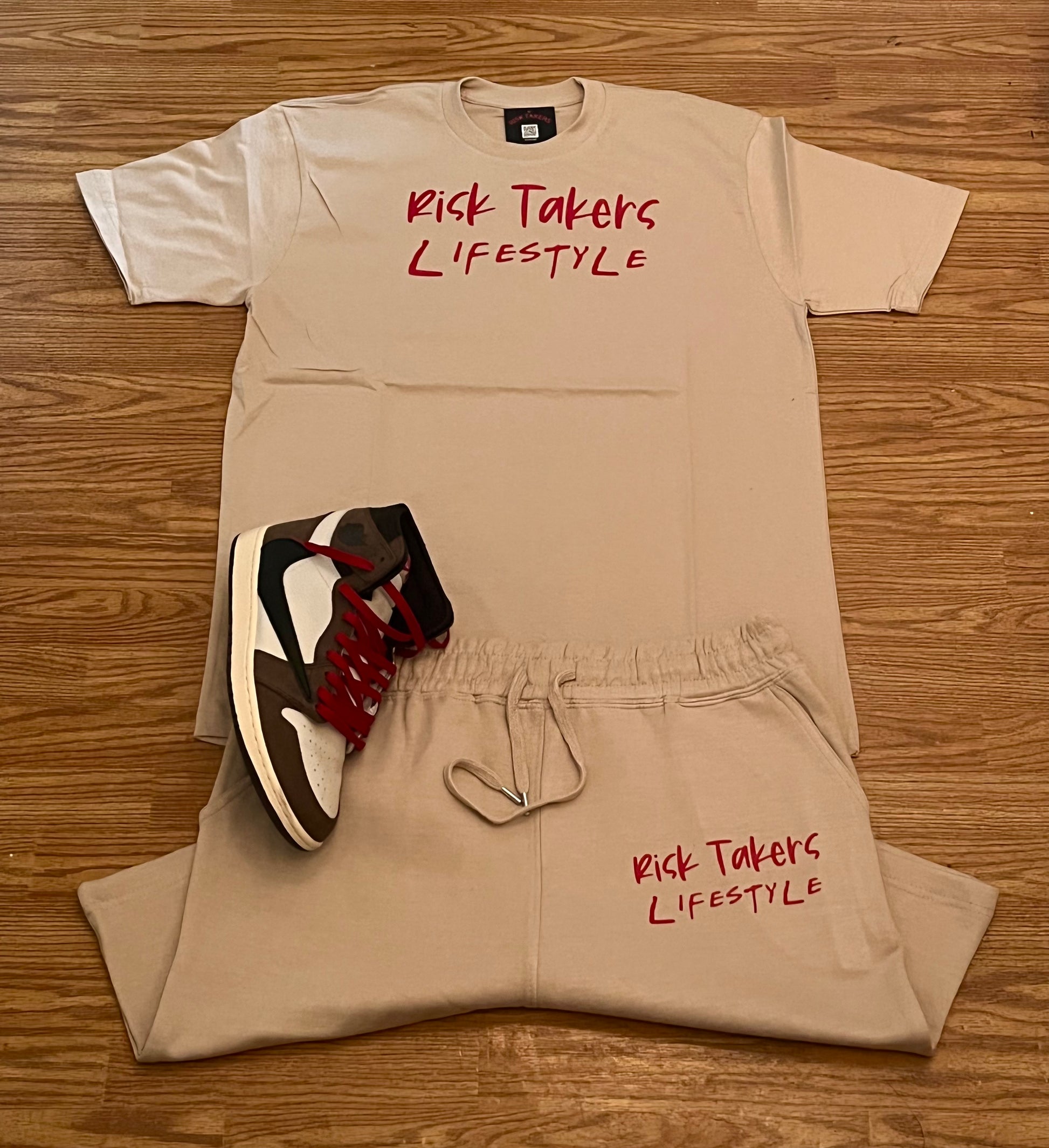 Cream With Red Unisex RT Lifestyle Sweat Short Set