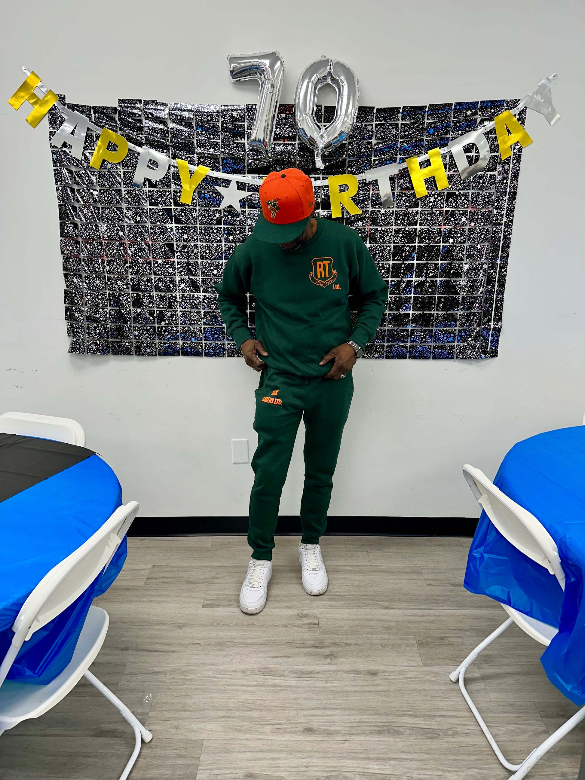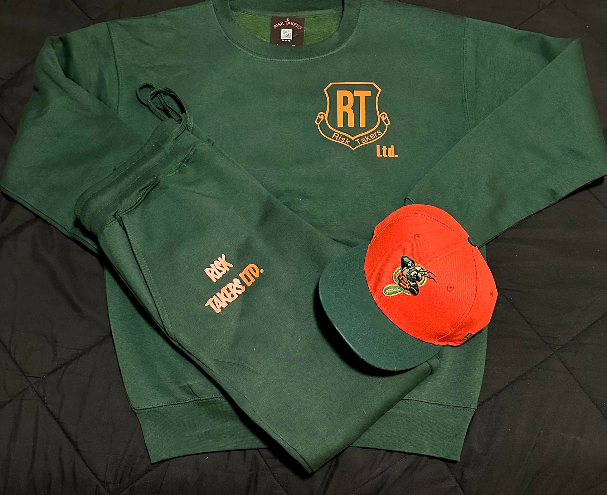 Hunter Green n Orange Miami Hurricane Colorway Unisex Crewneck Sweatsuit