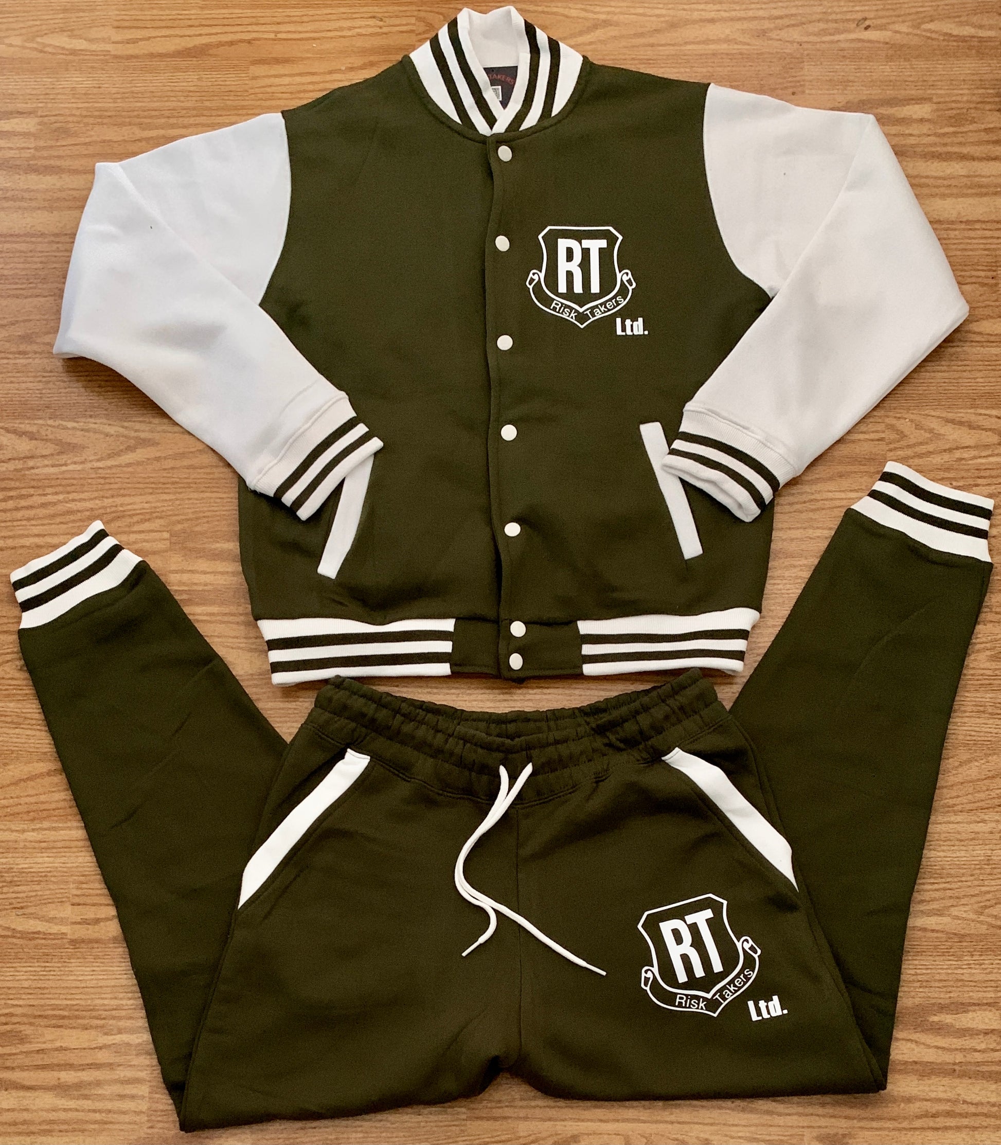 Military Green With White Unisex Varsity Sweatsuit