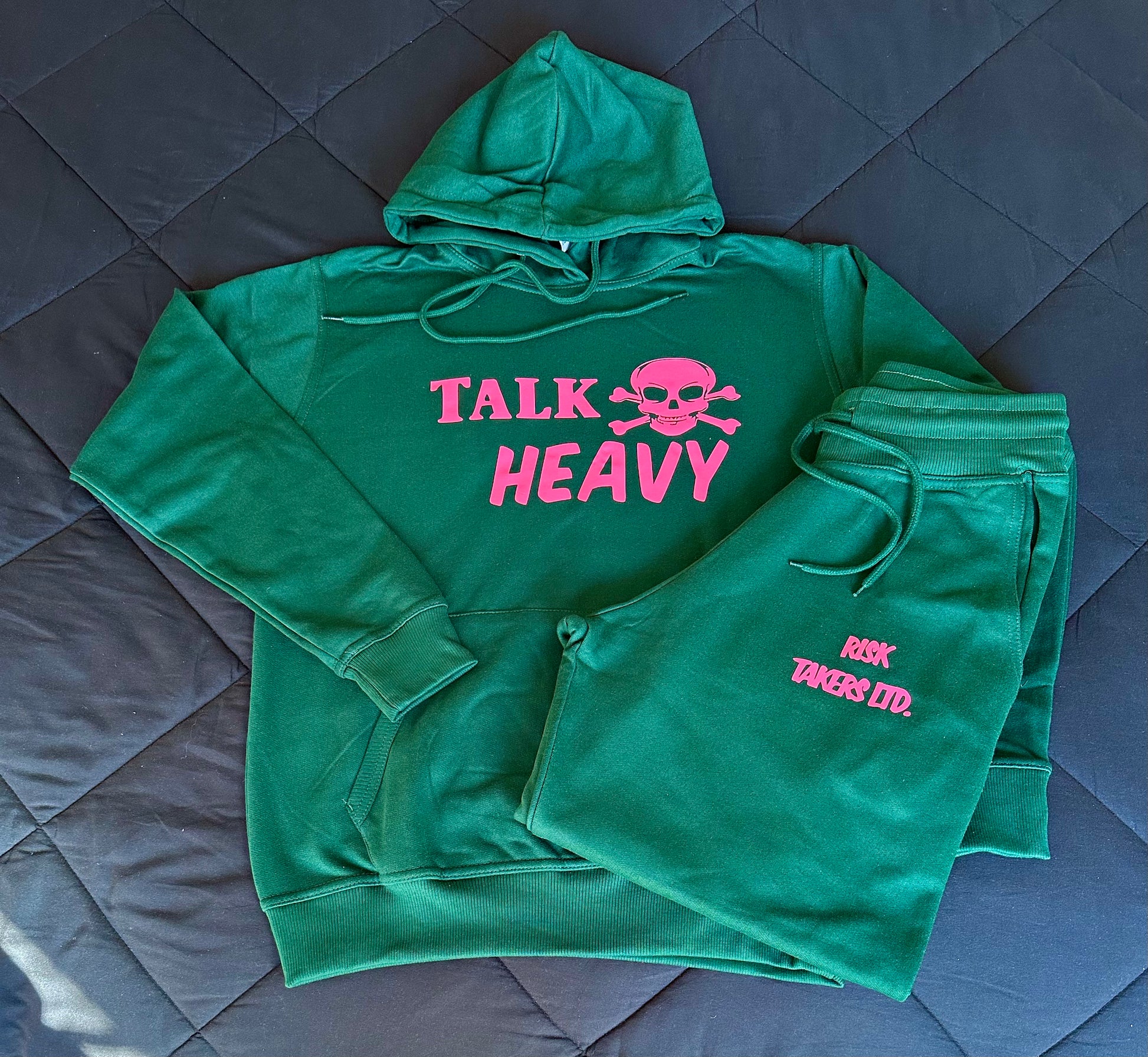Pink With Green Unisex TALK HEAVY Hooded Sweatsuit