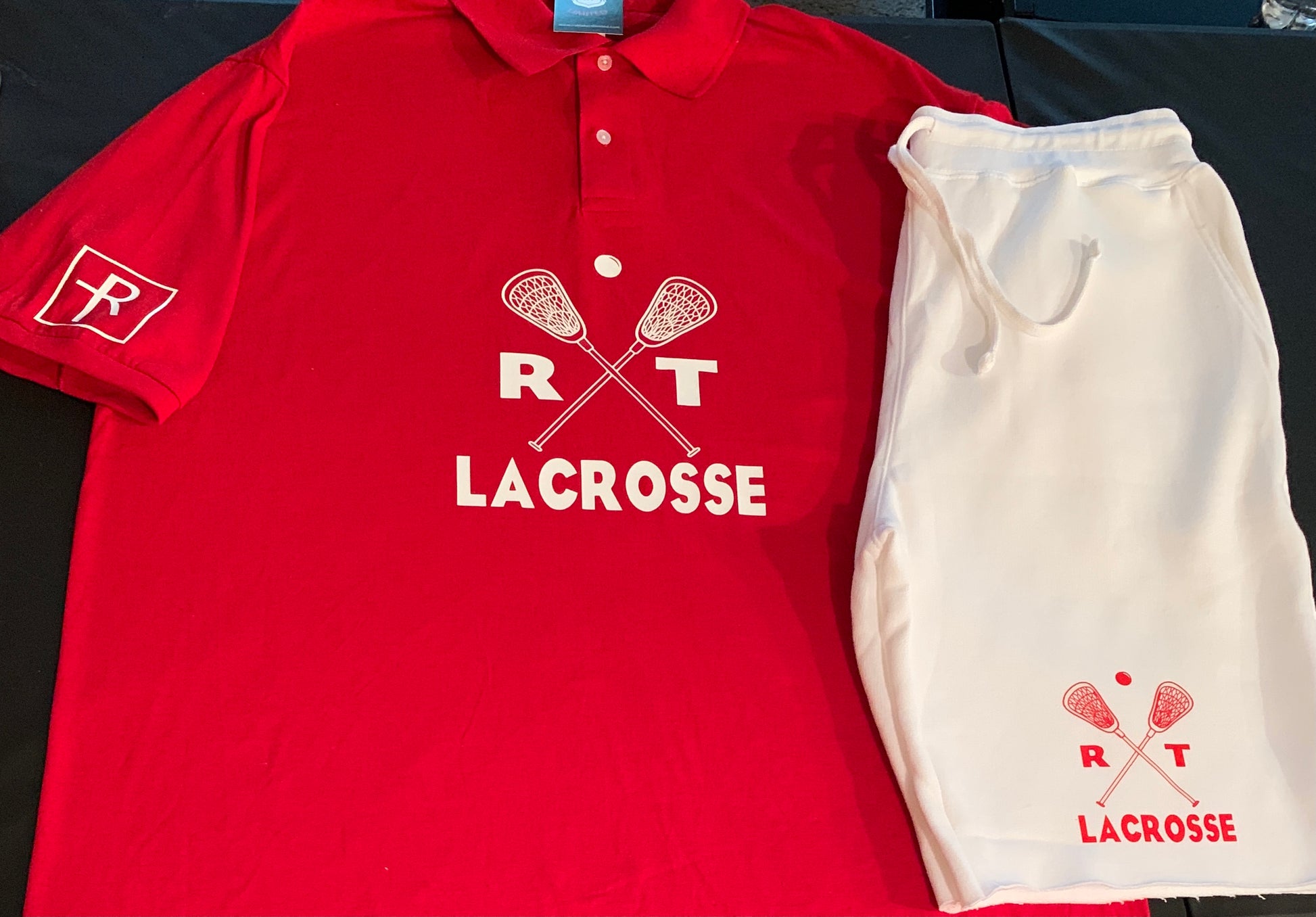 Red And White Unisex RT Lacrosse Polo And Sweatshorts