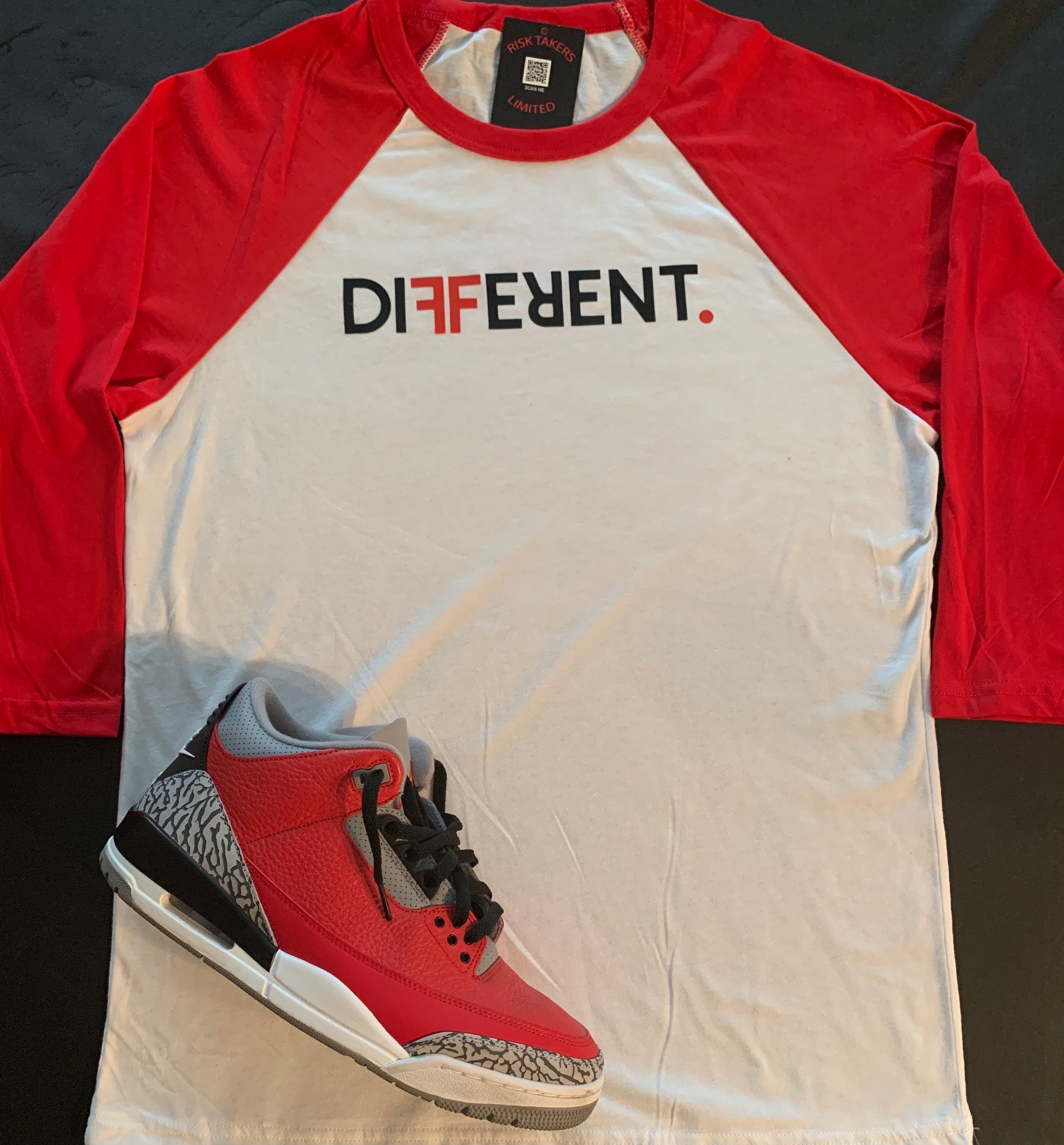 Red With White And Black Unisex DIFFERENT Baseball Tee